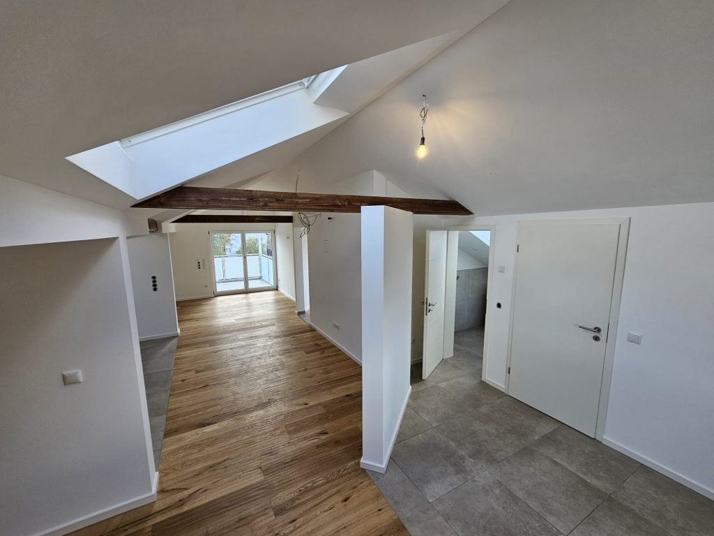 … beschreibt die Umwandlung eines ungenutzten Dachbodens in vollwertigen Wohnraum durch Dämmung, Luftdichtes verschließen, Beplankung, Verkleidungen und Installation von Fenstern, Treppen sowie Technik, um neue Zimmer zu schaffen. Es gibt jedoch einige Vorschriften zu beachten, sodass man hier einige Erfahrung mitbringen muss.