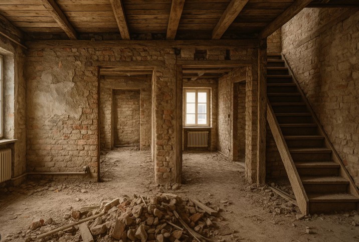 Fachgerechter Rückbau aller nicht tragenden Bauteile eines Gebäudes. Ziel ist die Vorbereitung, Umnutzung oder einen Teilabbruch für eine Sanierung.